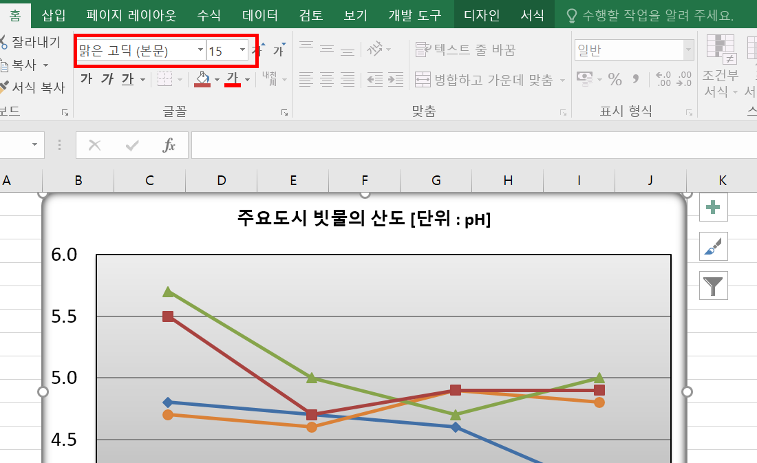 차트 글씨 실크기 13pt이나 15pt여서 틀렸다고 나오고