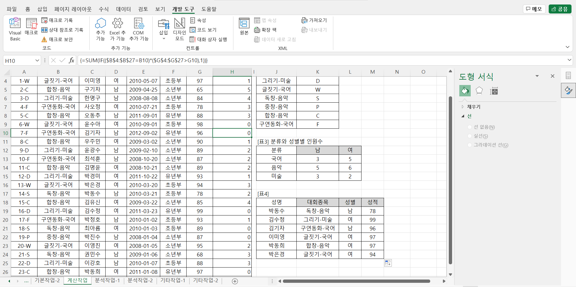 205페이지 계산작업 3번 종목별순위를 계산하는 문제입니다.