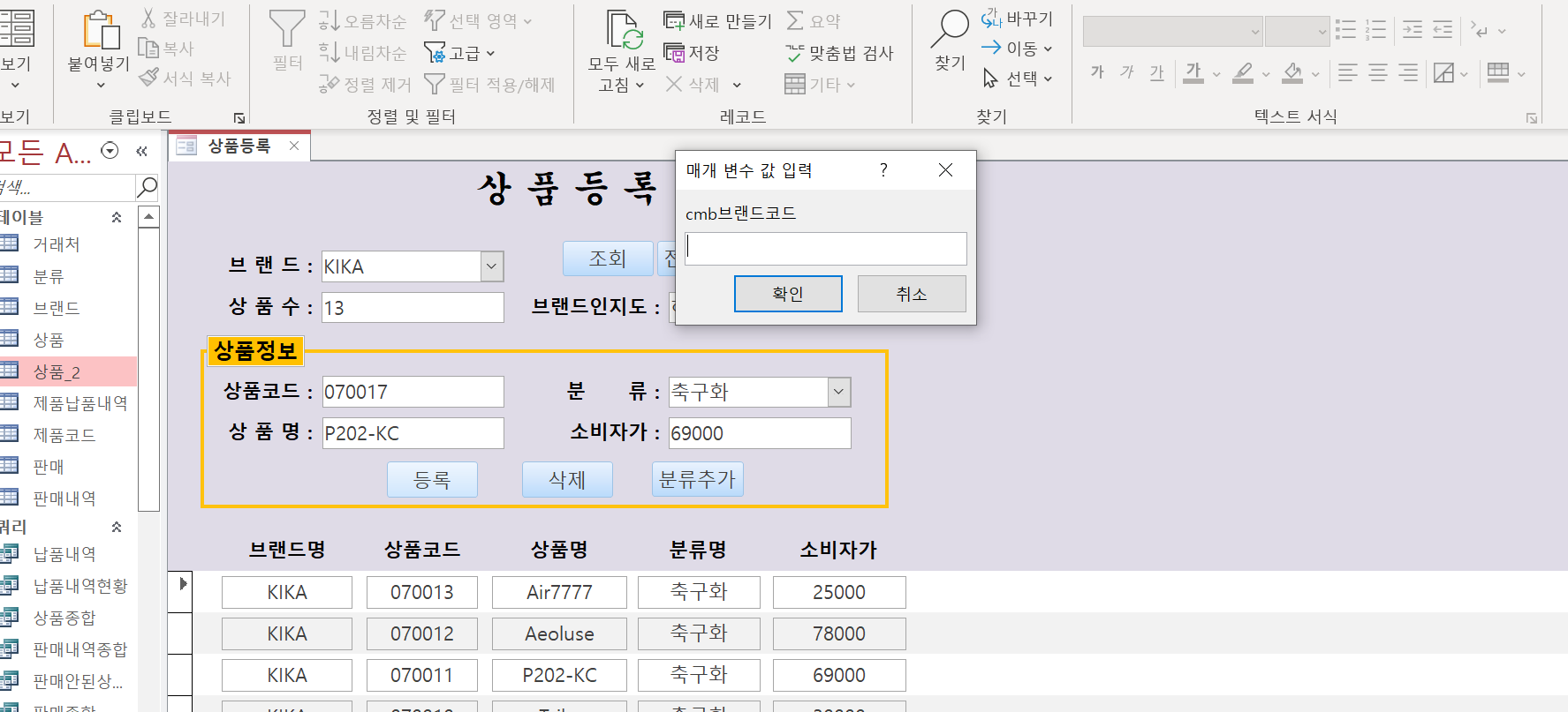 4번 문제의 경우 분류 등록 폼에 이벤트 프로시저를 추가하게 되는데요,