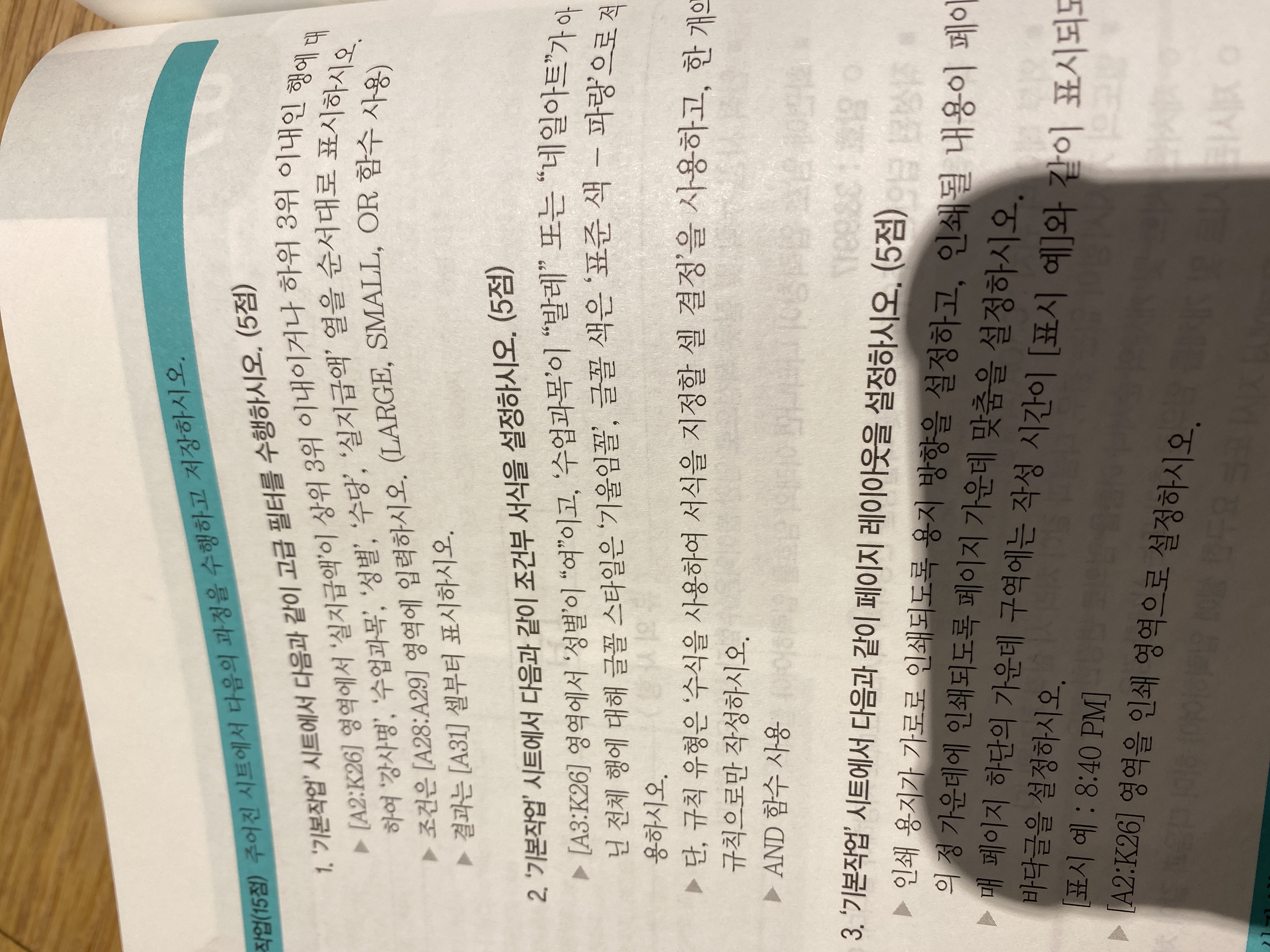 문제의 의미는 "성별이 여이고, 수업과목이 발레도 아니고 네일아트도 아닌 전체 행에 대한 서식 지정"을 의미하는 것입니다.