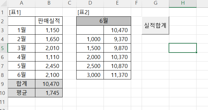 실적평균 매크로를 만들기 전 모습입니다. 표2에 E6에서 E8까지 내용을 지우고 삽입에 들어가 매크로를 만들어야 하나요?