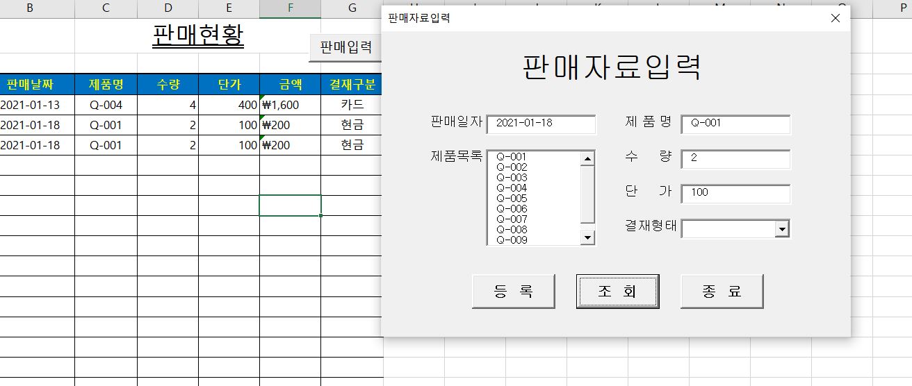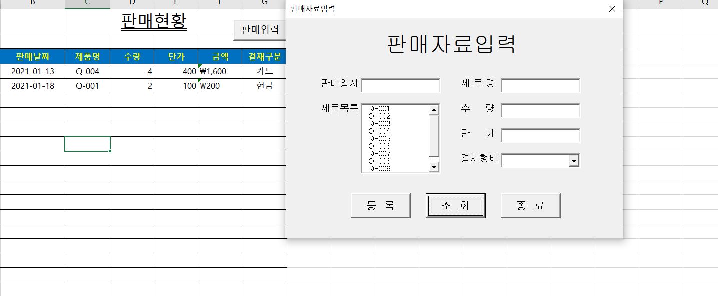 하지만 디자인모드를 해제하고 폼을 열어 조회 버튼을 클릭해보니, 워크시트의 내용이 조회되는 것이 아니라 공백이 조회되는 현상이 발생했습니다.
