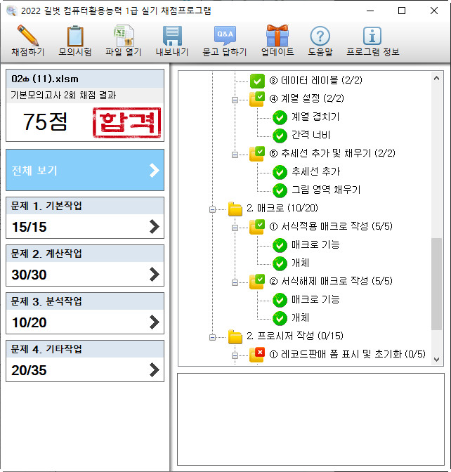 매크로 작성을 제대로 한 것 같은데 채점프로그램에서 틀렸다고 하여 어떤것이 틀린건지 궁금합니다