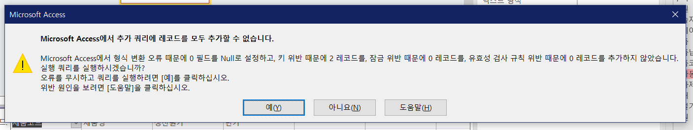 '여'를 눌러서 강행했더니 일단 답안처럼 2행이 추가되기는 했는데 제가 뭘 잘못한 건지 모르겠습니다.