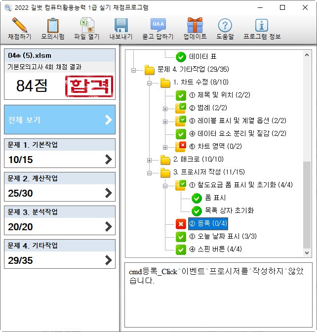 올려주신 파일을 채점해봤는데 저는 아래와 같이 채점됩니다. 다시 한번 확인 부탁드립니다.