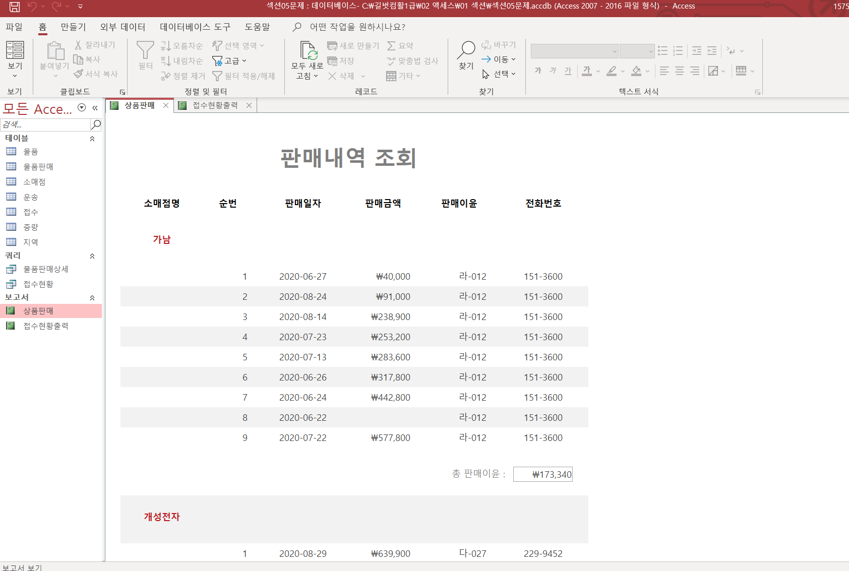작성하신 액세스 파일 자체를 올려주세요. 파일을 봐야 정확한 답변이 가능합니다.