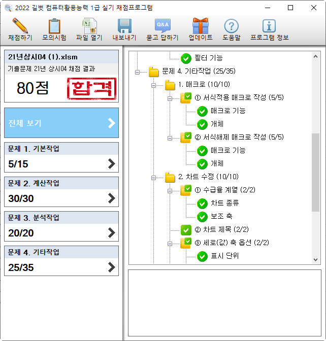 올려주신 파일을 채점하면 아래와 같이 매크로 부분 모두 맞는 것으로 나옵니다.
