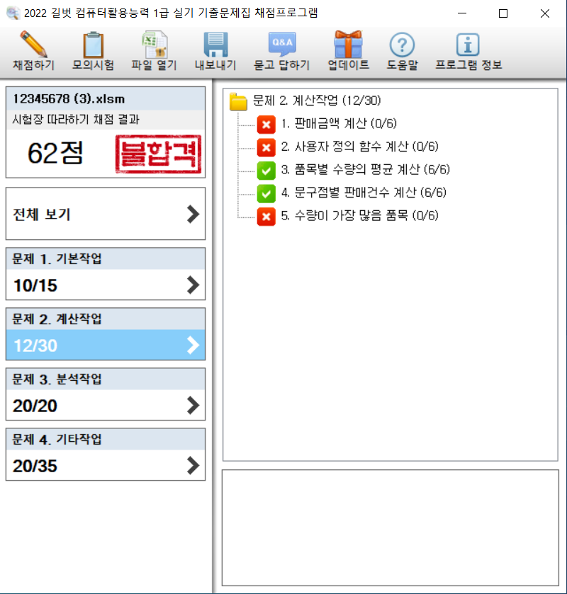 1. <2022 시나공 기출문제집 컴퓨터활용능력 1급실기> 정확한 파일 설치 유무 확인 부탁 드립니다.