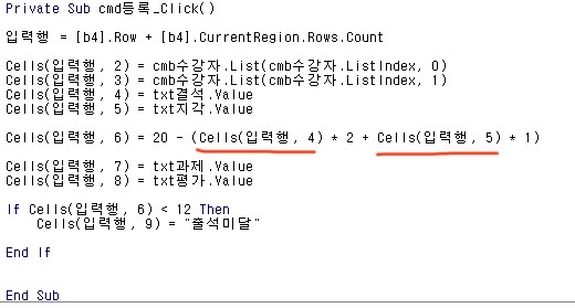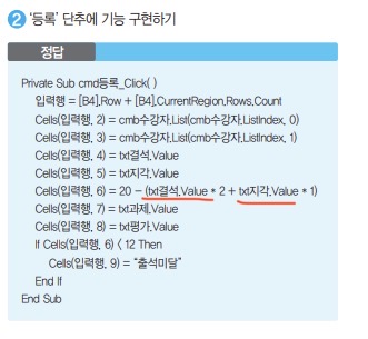 그렇다면 " txt결석.value " 값을 " cells(입력행, 4) " 이런 식으로 나타내면 시험에서 틀린 것으로 인정되나요?