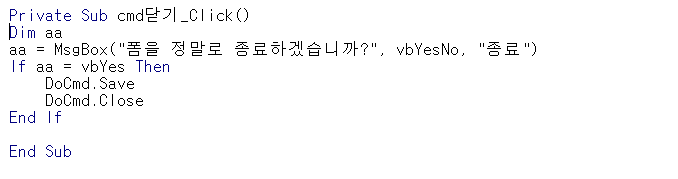 "Docmd, Close 함수를 사용하시오" 라고 지시했습니다.