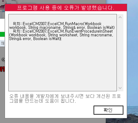 문의하신 오류는 윈도우 환경 문제로 비쥬얼 베이직 쪽에서 오류가 발생한 것으로 보여집니다.