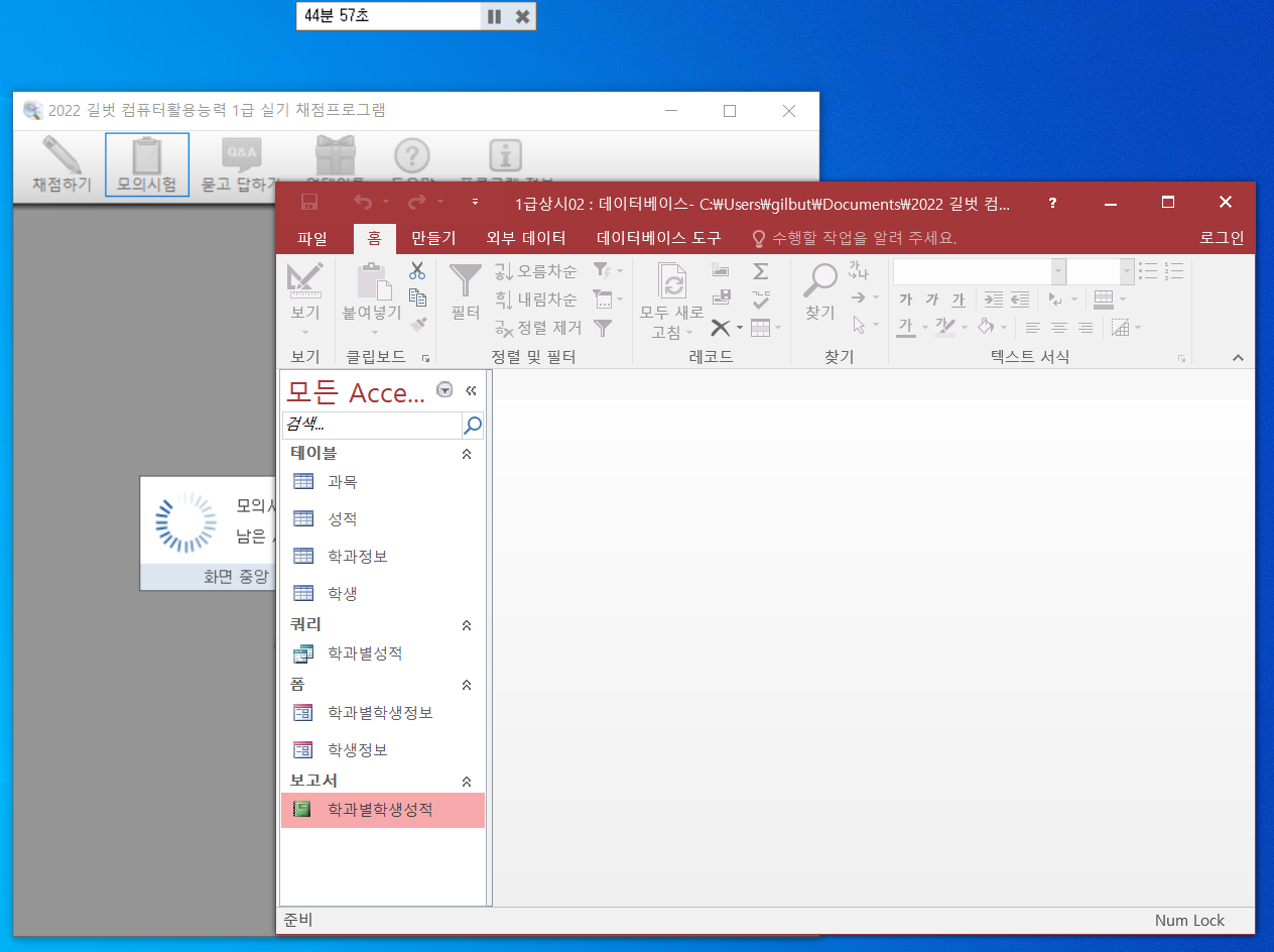 2022년 상시02 엑세스 기출문제를 모의시험으로 클릭하면 문제파일이 아니라 자꾸 정답파일이 뜹니다.