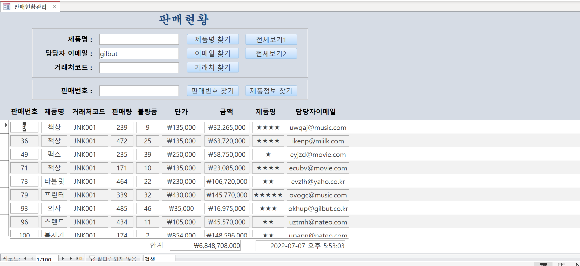 RecordSource기능을 이용해 이벤트 프로시저를 작성하였고