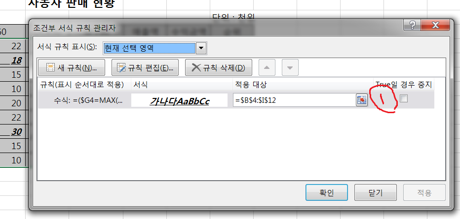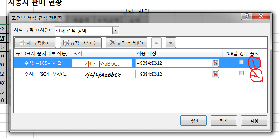 조건부 서식 1, 2, 3,... 을 이용하시면 안되는것이죠.