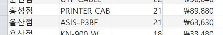 홍성점과 울산점 저 둘의 위치가 바껴야하는데 둘다 반품수는 21로 같은데