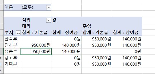 그림과 동일하게 광고부, 기획부 순서가 달라지는데요.