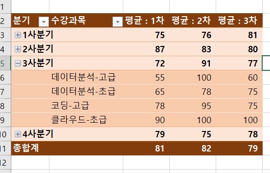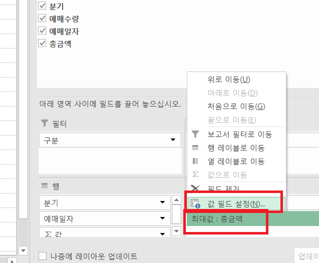 피벗테이블 작성 과정을 똑같이 몇 번 따라했는데