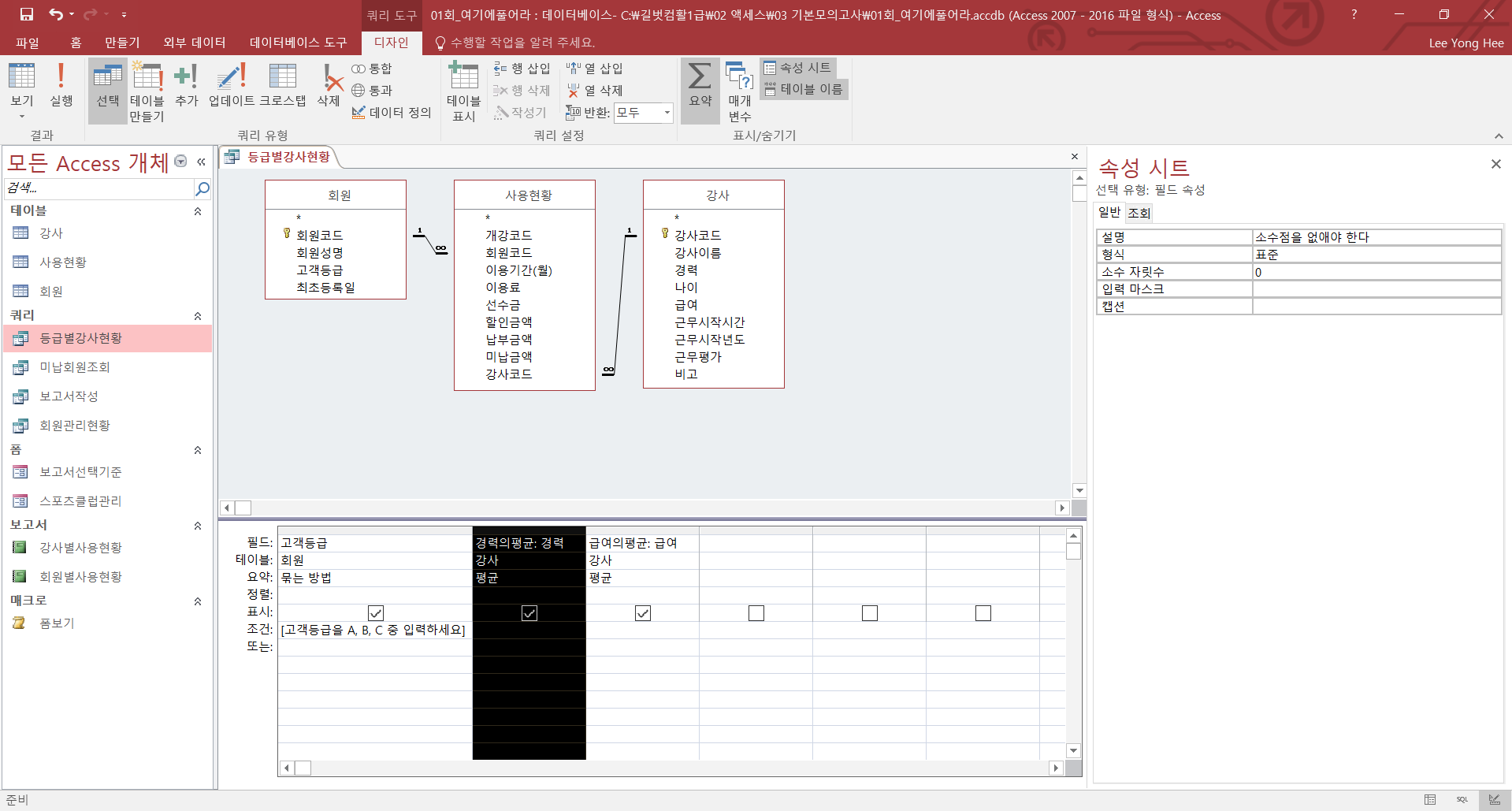 질문1. 경력의 평균 속성 시트 형식을 '표준'이 아니라 '고정'으로 하면 오답처리 되나요?