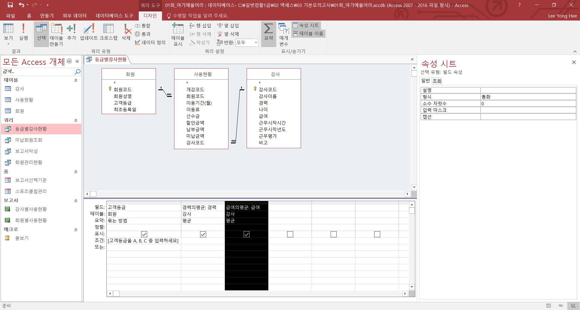 해설은 경력의 평균 속성 시트 형식을 '표준'으로 정했지만 '고정'으로 해도 결과가 똑같습니다.