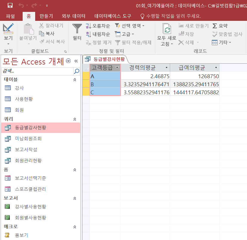 (소수자릿수를 안 정하면 고객등급 A,B,C일 때 경력의평균은 각각 2.47, 3.32, 3.56)