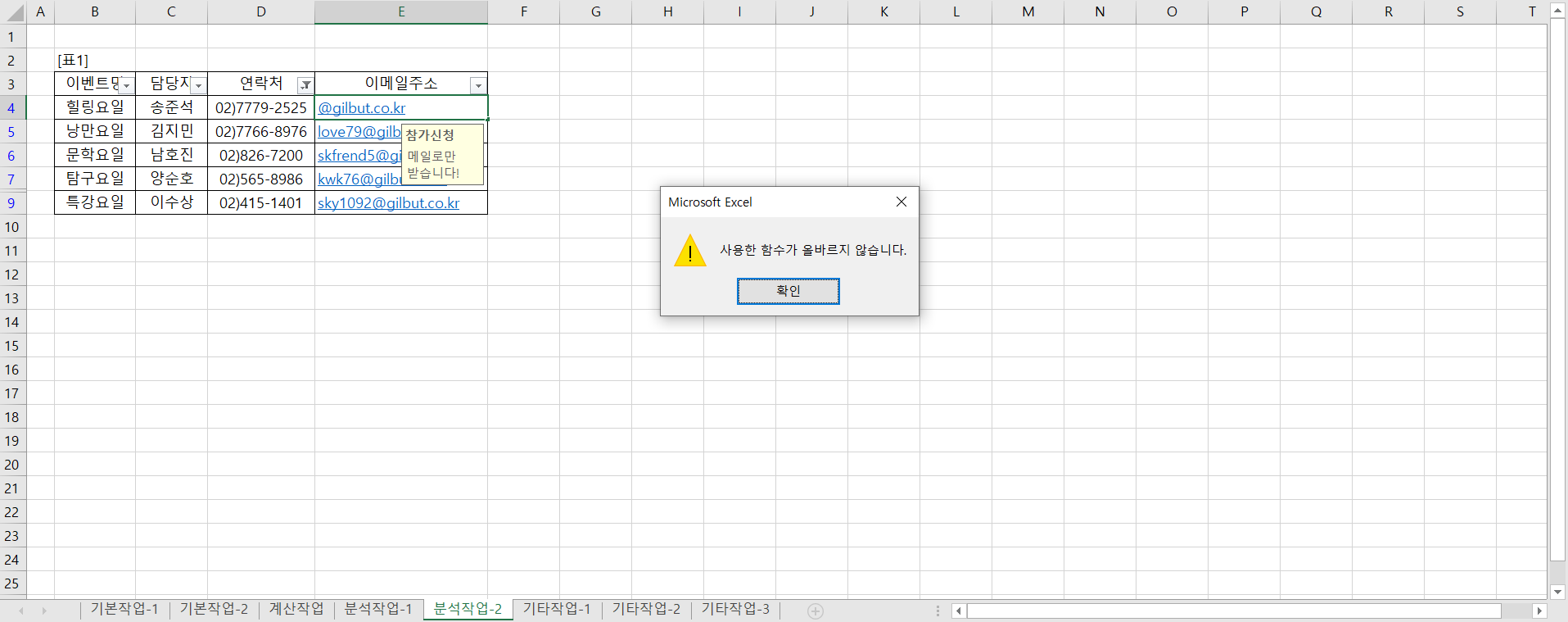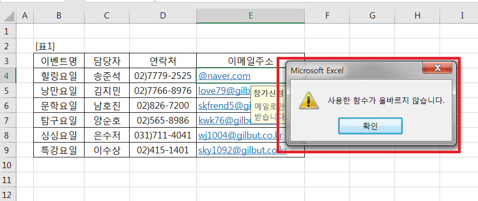 2. 그림상으로 봤을 때 유효성 검사 규칙이 아닌 일반 식 에서 오류가 난 것이 아닌가 싶습니다.