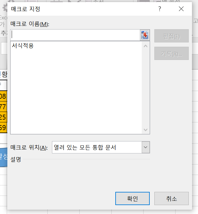 매크로 이름을 입력하여 다시 한번 확인 해 보세요.