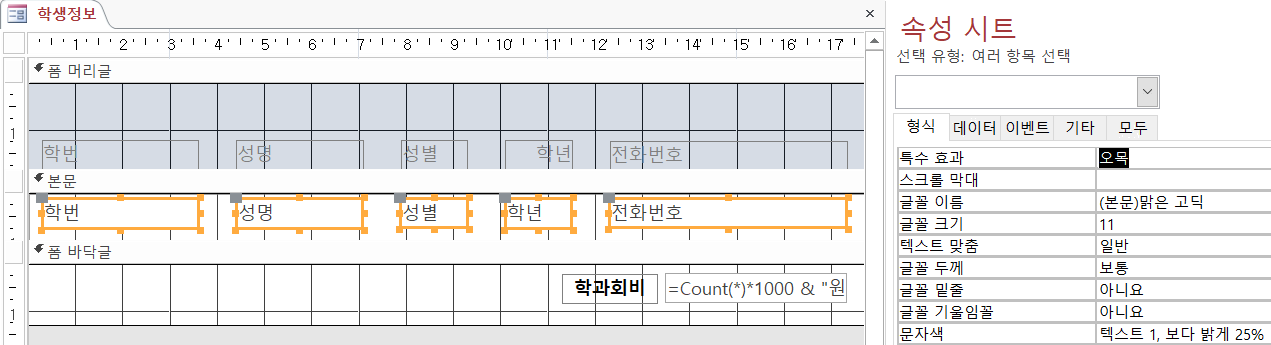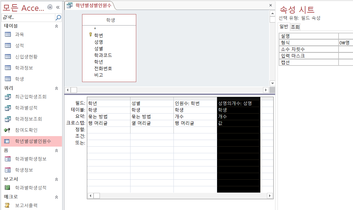 Q3. 해설 238P의 3번째 필드 '학번의개수: 학번' 대신 '성명의개수: 성명'라고 썼습니다.