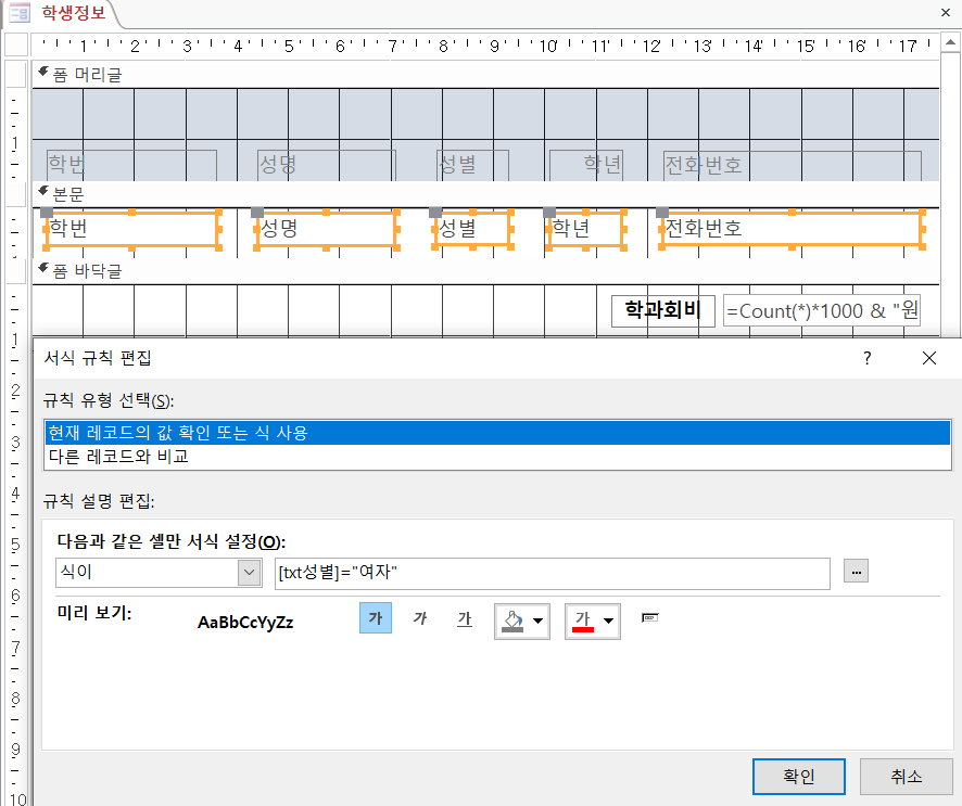 Q2. 식 [성별]="여자" 에서 [성별]이 아니라 [txt성별]로 썼는데 결과가 똑같습니다.