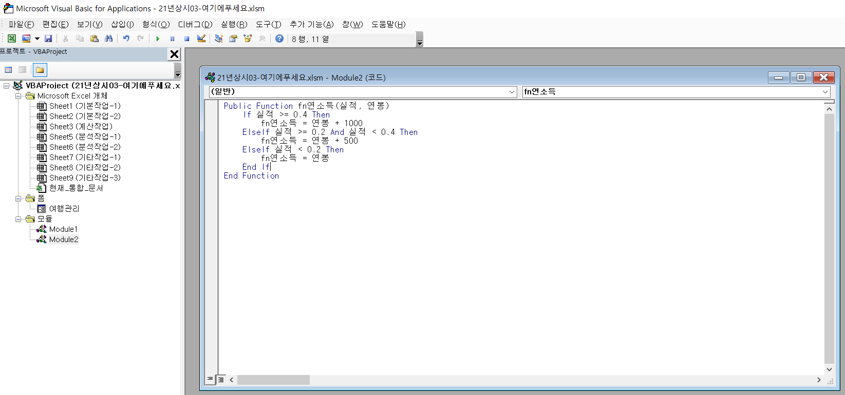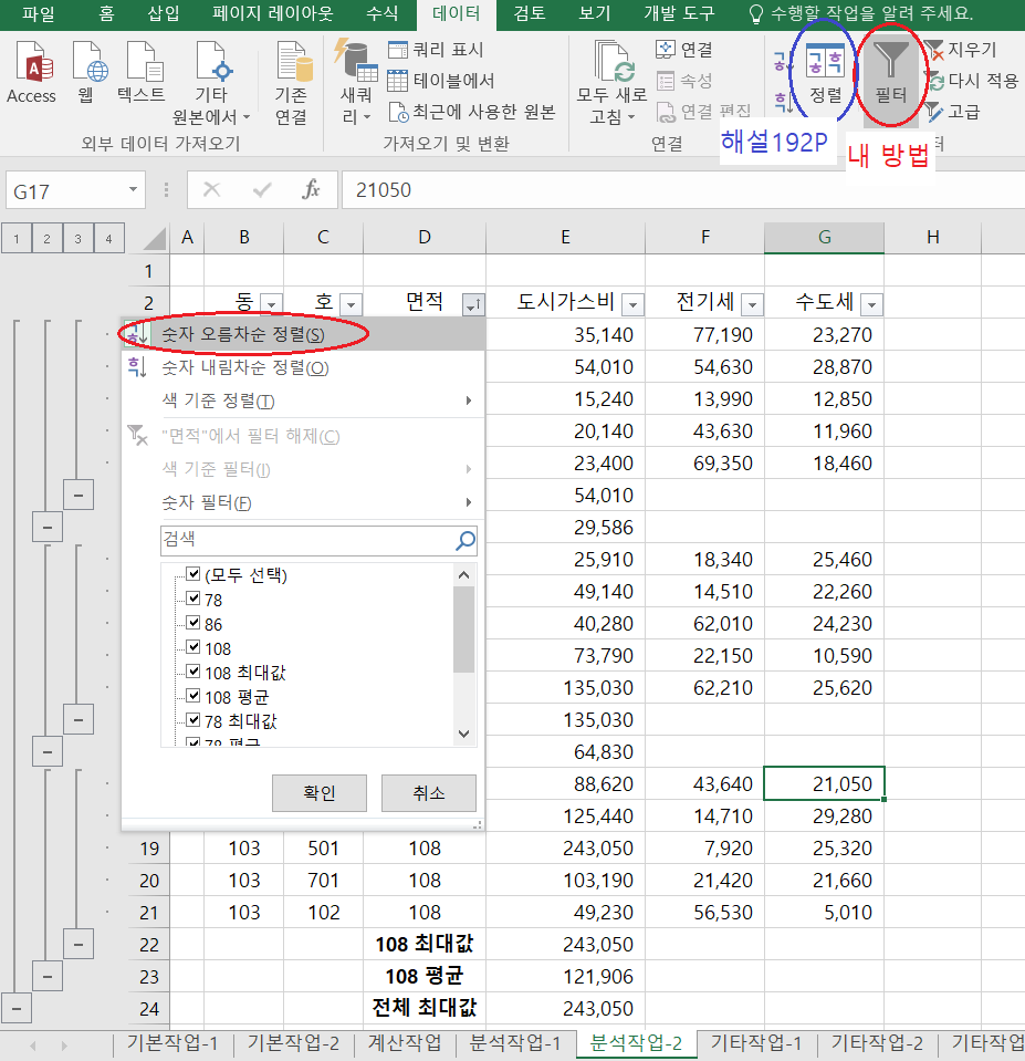 하지만 새로운 시트가 해설 191P의 정답과 달리 동→호 순서가 아니라 호→동 순서로 돼있습니다.