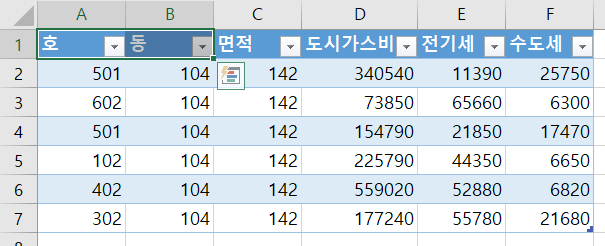 기본적으로 파일을 그대로 가져오면 동, 호 순서로 작성되어 있기 때문에 그대로 사용하면 됩니다.