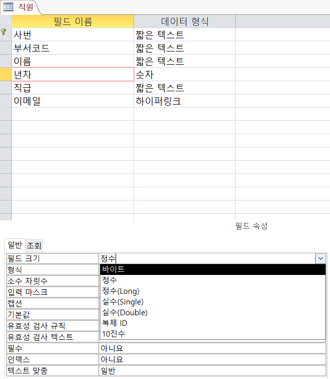 ①[txt조회] = [직무평가]![평가년도]