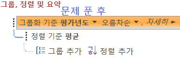 동일한 '평가년도' 내에서 '평균'을 내림차순 정렬하라길래 아래 사진처럼