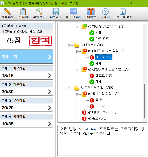 엑셀의 '보안설정'으로 매크로 부분의 채점이 원활하지 않을 수 있습니다.