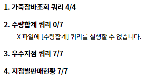 온라인채점을 하면 다른 이유(쿼리 실행이 안됩니다) 때문에 0점처리 됩니다.