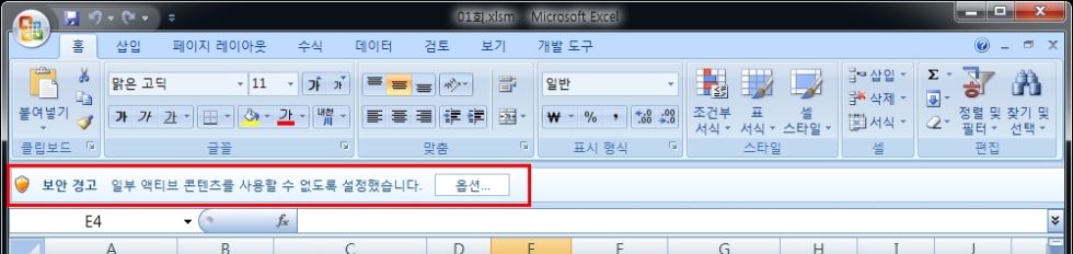 Excel 옵션 메뉴에서 보안 옵션을 변경하신 파일을 열어주세요.
