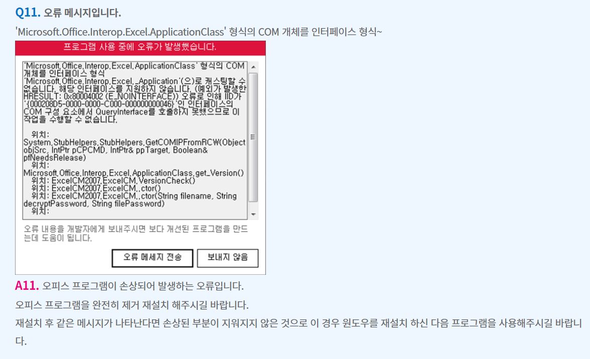 우선 채점 프로그램 오류로 학습에 불편을 드려 죄송합니다.답변 내용에 나와있는 것처럼 오피스 재설치 후에도 계속해서 발생되는 문제의 경우,