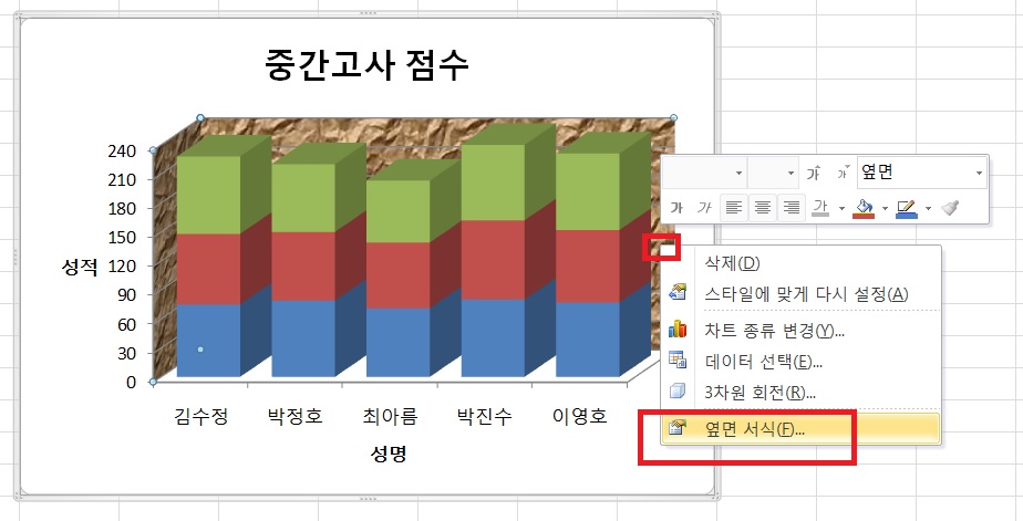옆면서식에서 지정해 보세요.