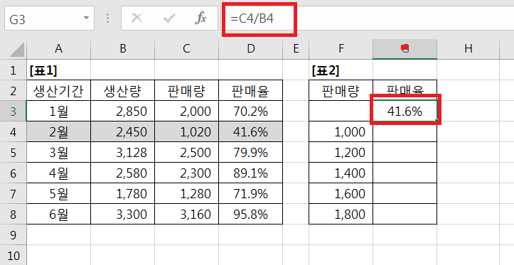 아래 그림과 같이 d4셀의 식을 붙여넣고 데이터 표에서 열입력셀에 c4 값을 입력하고 지정해 보세요.