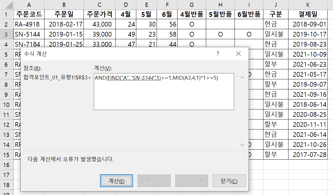 스프레드시트 기본작업-고급필터 p.15 유형6 find 함수 사용 오류
