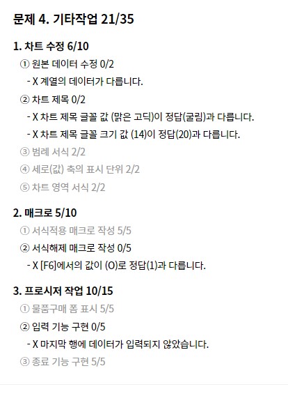 서식해제 매크로 작성과 서식적용 매크로작성은 마지막 결과값에 따라 두개가 번갈아 가면서 오답이라고 나옵니다(정답 체크를 두번 하면 두번이 다르게 점수가 나와요.