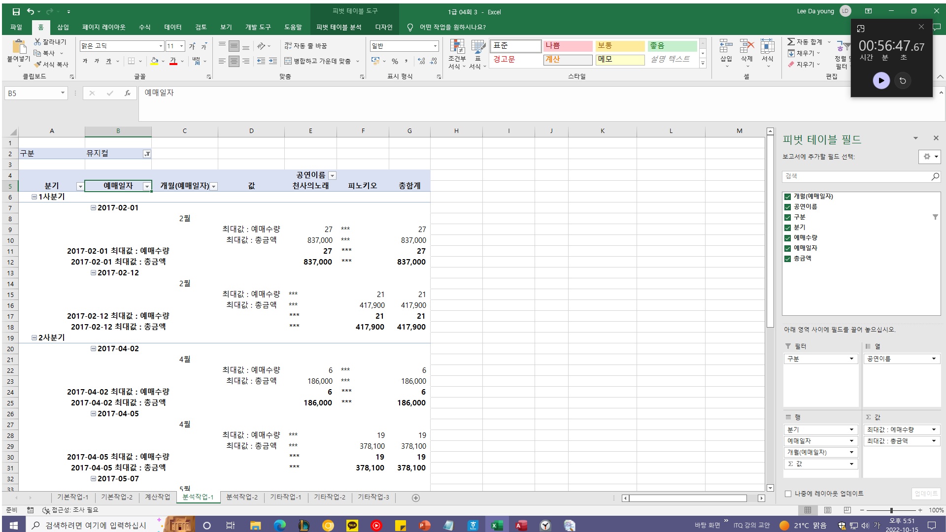 2022 시나공 기출문제집 컴퓨터활용능력 1급 실기