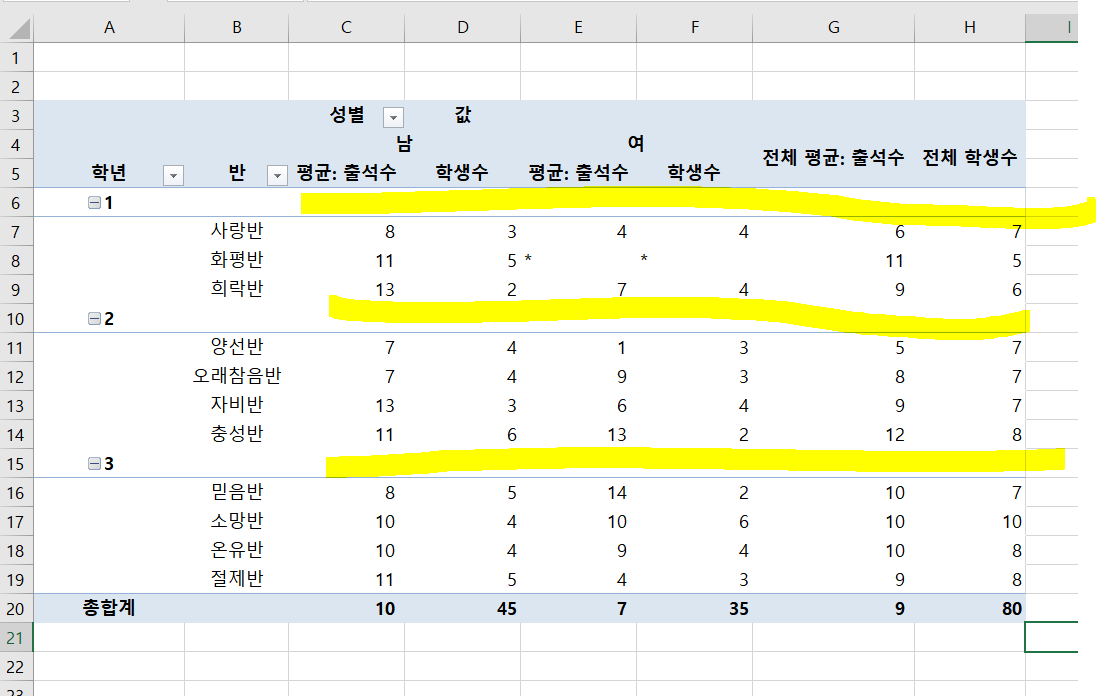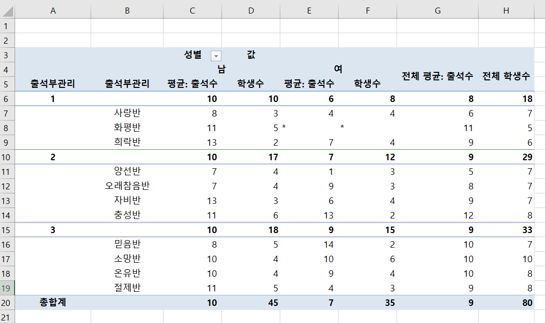 -'필드,항목 및 집합'에서 '행항목을 기준으로 집합만들기'를 누르면 다음 사진과 같이 +-단추와 필터가 사라지는데 시험에서 정답으로 인정되나요??