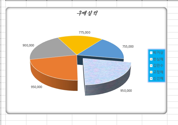 ④ '박거상' 데이터 요소를 차트에서 분리한 후 "꽃다발" 질감을 설정하시오