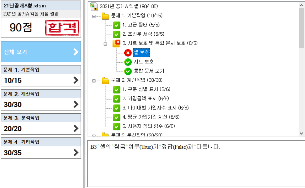 기타작업 2번. 문제에 B3의 언급도 없었고 건드린적도 없는데 틀렸다뜨네요.. 프로그램 오류인가요?