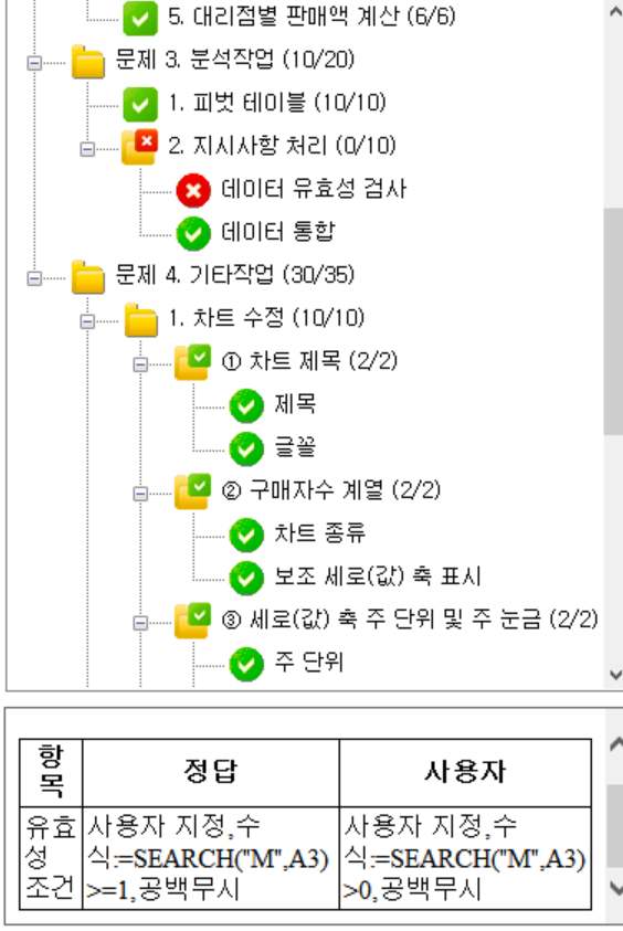 시나공 채점 프로그램은 정답파일과 정확히 일치해야 정답으로 인정 하므로 오답처리 된 것입니다.