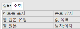 문제에서 "남자"와 "여자"가 콤보 상자의 형태로 나타나도록 성별 필드의 조회 속성을 설정하라고 하였는데,