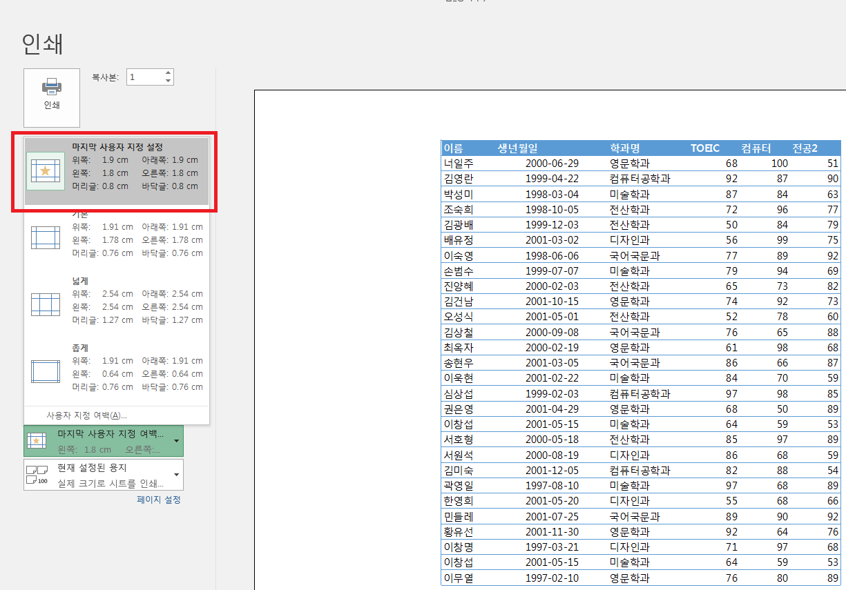 기본작업2의 문제를 모두 해결하고 인쇄미리보기를 하면 책에는 2페이지가 임창석, 배동진만 있는데 제가 작성한 파일에서는 2페이지에 이무열도 함께나와요. 왜그런건가요?