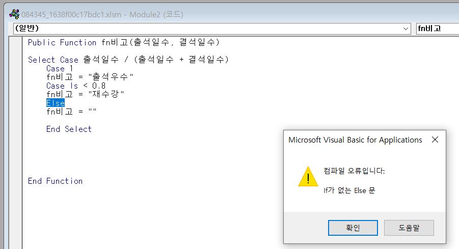 'IF'가 빠진 '~Else'만 있어서 오류가 발생하여 실패된 경우입니다.
