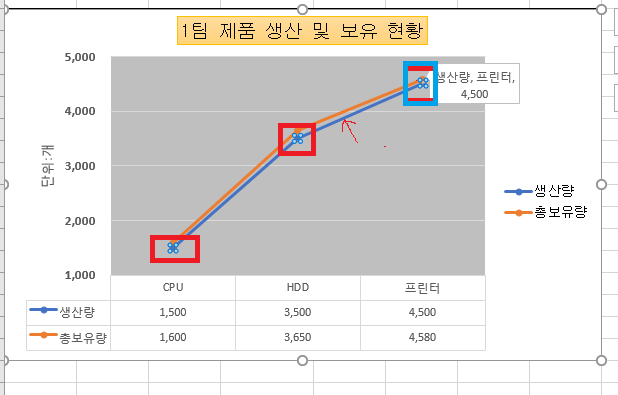 범례가 아니라 아래 그림과 같이 생산량의 꺽은선형 그래프를 클릭하면 점이 표시됩니다.