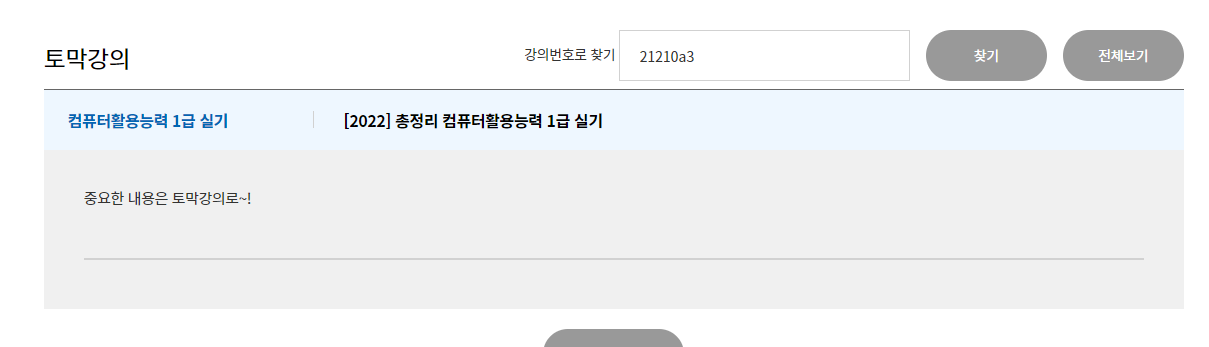 시나공 IT 홈페이지에 토막강의 업로드 완료되면 문자통해 안내드리도록 하겠습니다.